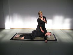 Monika's stijl van shiatsu is dynamisch met aandacht voor het in beweging brengen (remobiliseren) van stagnaties. Massages met de handen, duimen, handpalmen en ellebogen stimuleren de ki weer vrij te stromen. Door strekkingen, manipulaties en het behandelen van de spieren rond om een spanningsgebied wordt het symptoom direkt benaderd. Spanningen verminderen en de bloedsomloop wordt verbeterd.